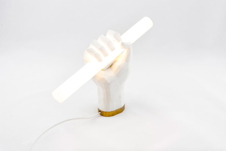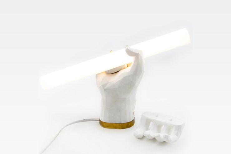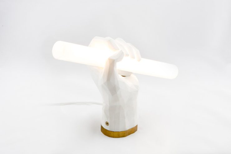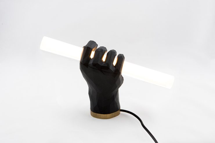 Austrian design studio Das Happy Medium presents “Puno,” its latest creation, in the form of a 3D printed table and/or wall lamp with lots of character. The lamp is a polygonal structure of a hand that meets the straightness of a fluorescent tube light, which stands triumphantly on a surface or hangs organically on a wall. The name of the lamp is derived from the Spanish word “Puño” which translates into “Fist.” Weighing only 0.6 kg, and a dimension of 10 x 50 x 210 mm, the Puno lamp is available in white and black colors, and will set you back €699 EUR. Proceed here for purchase.