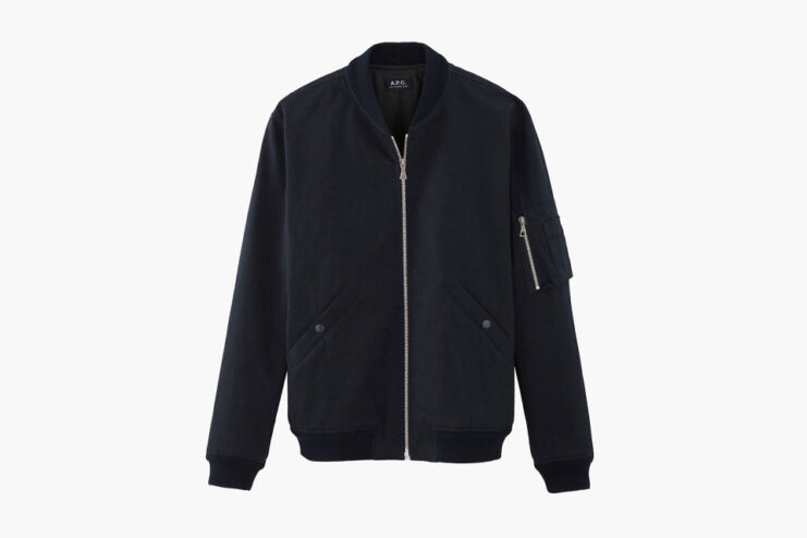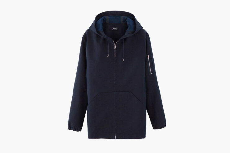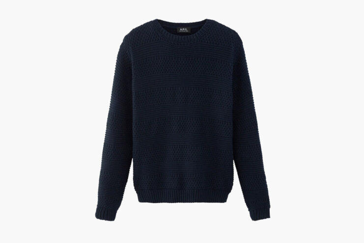 French label A.P.C. has unveiled its fall/winter 2015 Resort collection. Staying true to its simple, yet bold aesthetic, the collection features a selection of military style olive green jacket, speckled and cable knit sweaters, collar shirts and jackets, print tees, and a silver chain necklace. Furthermore, denim texture has been utilized in the construction of some pieces, including tops, jackets, pants, a ball cap, and a backpack. Two black leather footwear options completes the collection. The A.P.C. Fall/Winter 2015 Resort Collection which is now available, can be purchase via the label’s online store.