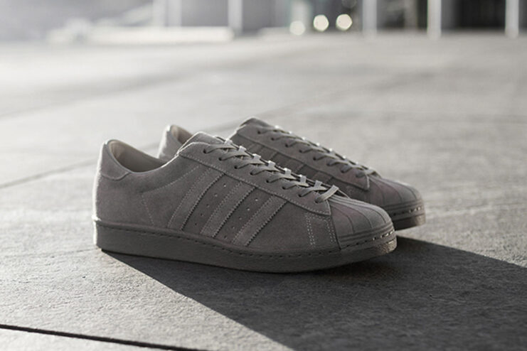 adidas Consortium has unveiled a limited edition of the Superstar 80v in commemoration of its 10th anniversary. Dubbed the “Metropolis,” the special release boasts a soft suede leather upper in light gray, that sits atop a matching outsole, rounded off with a suede shell toe. The sneaker also sports a silver foil-embossed Consortium insignia on the tongue, with individual numbering on the heel tab. The adidas Consortium Superstar 80V “Metropolis” is slated for a November 13 release at select Consortium retailers, including No.42 Paris and No.74 Berlin, for $160 USD.