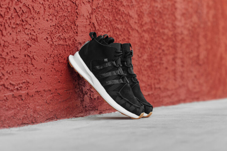 The adidas Originals SL Loop Runner Moc makes a return for fall 2015. Originally released last December 2014, the unique mid-top moccasin has been updated with a reflectivity feature for better visibility at night. Just like the original design, the shoe sports a black suede upper and nylon moc-stitch detailing that sits atop a white EVA midsole and contrsting gum rubber outsole. The adidas Originals SL Loop Runner Moc “Nightflash” is now available via Feature for $100 USD.