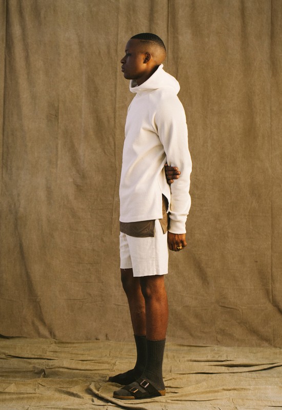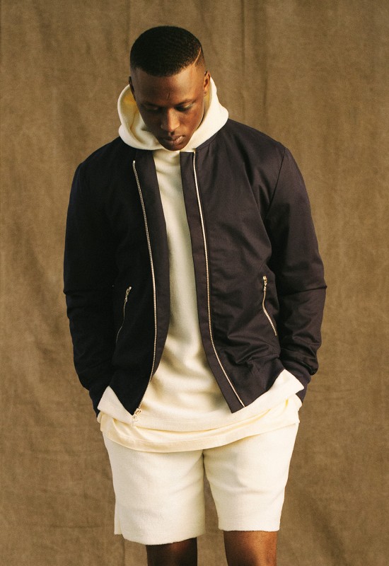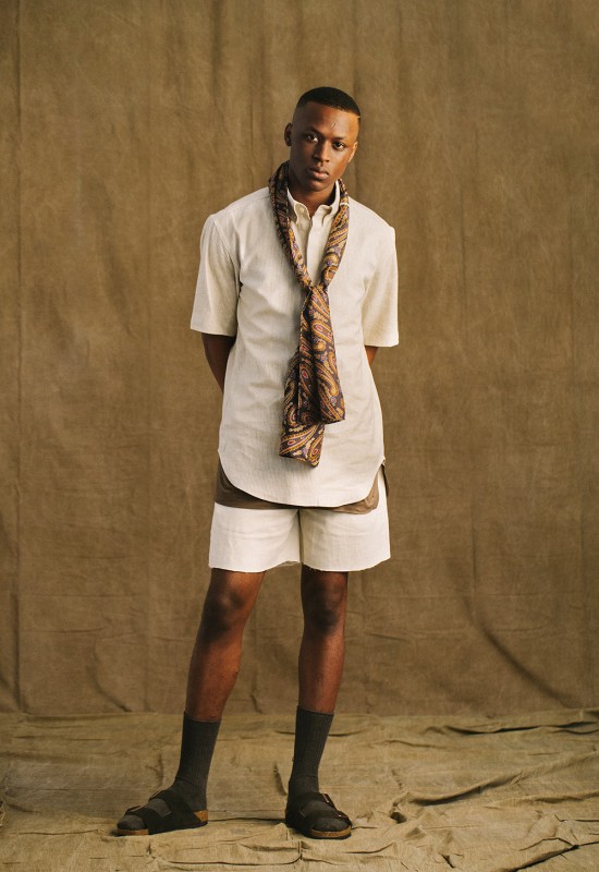 The collection features 36 pieces including linen T-shirts, tank tops, trench coats, throw-overs, a cotton knit cardigan, polos, short sleeve mandarins, linen pants, shorts, hoodies, crewnecks, a long bomber, and a coach jacket. All items are made from light fabrics such as cotton, linen and fleece, and showcased in downplayed colors.
