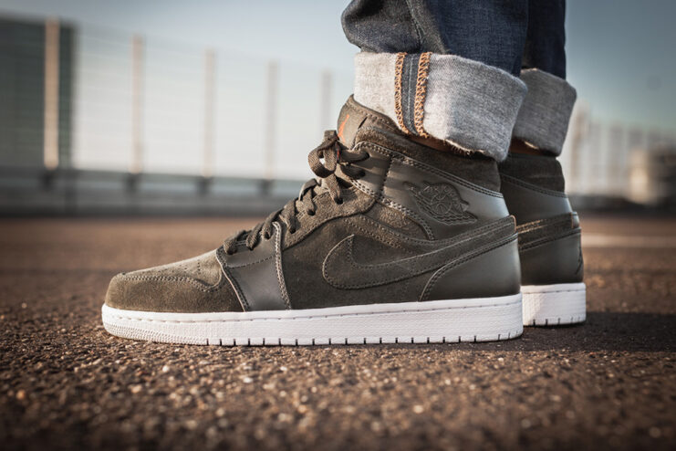 Jordan Brand just rolled out a crispy “Sequoia” iteration of the Air Jordan 1 Mid silhouette. Decked out in an olive green hue, the sneaker sports an upper made of premium leather and suede. The iconic Jumpman is featured on the tongue in bright orange, and a contrasting white sole unit rounds out the design.