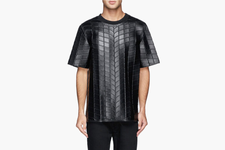 Alexander Wang presents it’s latest offering, the “Tire Tread” pack for Spring/Summer 2015. The collection consists of a jacket and T-shirt, built from fine leather, with a tire tread texture all-over. For a more comfortable wear, the pieces include a neoprene lining. The Alexander Wang Spring/Summer 2015 “Tire Tread” Pack is now available at select Alexander Wang stockists such as Lane Crawford. The jacket retails at $2,855 USD (approximately 10,487 AED), while the T-shirt retails at $1,875 USD (approximately 6,888 AED).