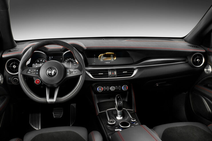 Under the hood, the Stelvio harbors a 2.9-liter V6 BiTurbo Quadrifoglio engine, which cranks out 510 horsepower. This engine is matched with an 8-speed automatic transmission, which features a Race mode and a lock-up clutch. All-wheel-drive as well as torque vectoring technology will also be available in the Quadrifoglio model and an Integrated Brake System helps reduce braking distance on any surface.