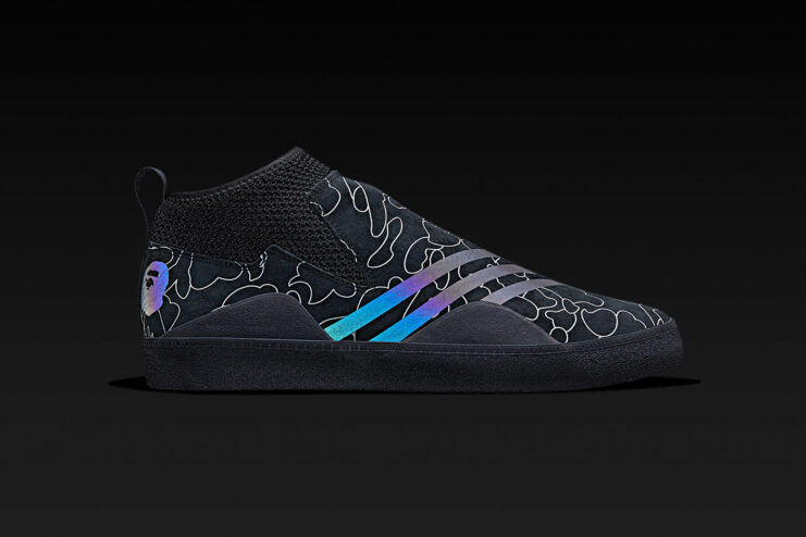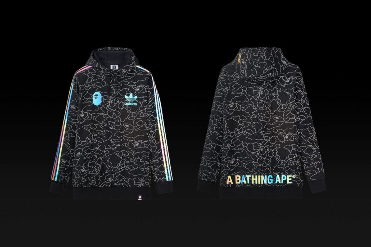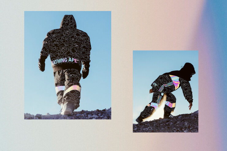 Complimenting adidas’ technology, is BAPE’s signature camo pattern showcased throughout all the pieces including a tech hoodie, snow jacket, slopetrotter pant, snowboots and the 3ST.002 sneaker. Each silhouette is accentuated with BAPE’s signature “LINE 1ST CAMO” and ABC CAMO motif, along with an aurora reflective print, which is inspired by adidas’s XENO branding to offer maximum visibility, and as eye-catching aesthetics.