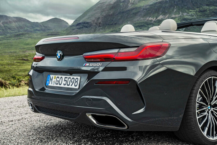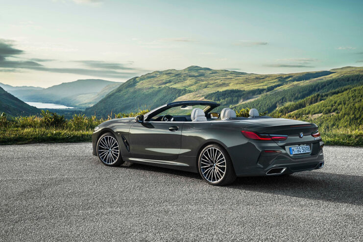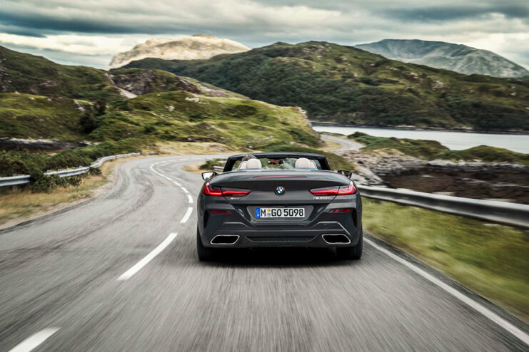 Design-wise, the new 8 Series Convertible resembles the new 8 Series Coupé, with a bold front-end and muscular lines. Additional features include a wind deflector, and a multi-layer fabric roof, which comes in a choice of either a standard black or optional anthracite color. The roof opens in 15 seconds at the touch of a button at speeds up to 31mph, automatically stowing beneath a tonneau cover trimmed with the same slush moulded plastic as the dashboard and door trims at the rear of the 2+2 cabin. Furthermore, the vehicle comes with 350 litres of boot capacity with the roof in place, which is reduced when it is stowed. In order to accommodate lengthy items, the rear seats split and fold in 50:50 form to free up greater load space.