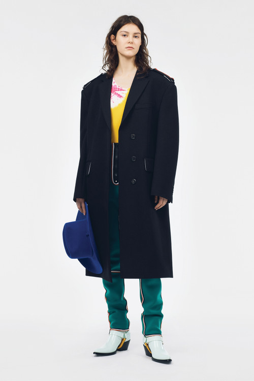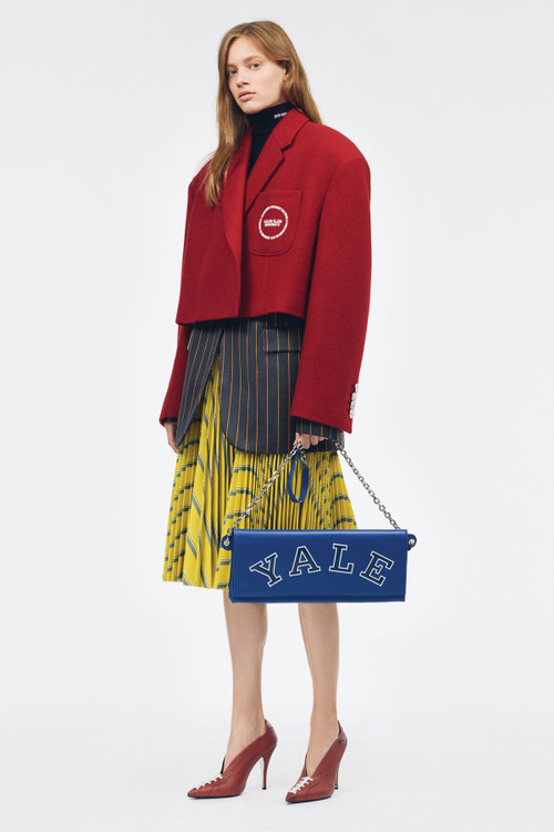 CALVIN KLEIN 205W39NYC just rolled out its Pre-Spring collection. For this collection, Creative Director Raf Simons has taken inspiration from the tropes of American youth, such as college. The range houses a selection of formal attires such as retro-inspired suit jackets and floor-length dresses, as well as outerwear pieces, and sport-ready sweats and varsity jackets. Logos and emblems from Yale University and the University of California, Berkeley can also be seen throughout the collection on handbags, sweaters, and more. Check out the Raf Simons-designed CALVIN KLEIN 205W39NYC Pre-Spring 2019 collection above, and expect it to hit select retailers soon.