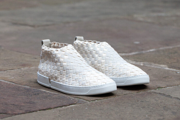 Italian footwear brand CASBIA presents the Woven Canvas, from its Spring/Summer 2016 collection. The footwear is produced in Italy from premium canvas, and it boasts a fully handwoven upper, a smooth leather overlay to the heel, a leather insole, all sitting atop a white midsole. The CASBIA Woven Canvas mid-top sneaker comes in both black and white versions and is now available at Foot Patrol.