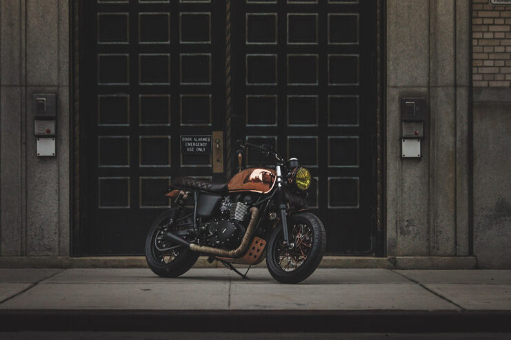 Marcos “Spaniard” Martinez and Ducati Triumph NYC joined forces to customize a 2015 Triumph Bonneville Standard. Both parties’ aim was to build a bike that would turn heads, and apparently with the whole usage of the copper theme that goal was achieved.
