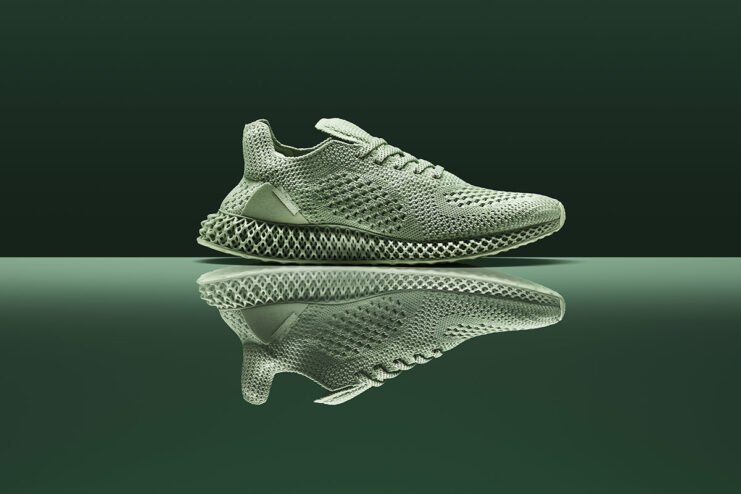 The shoe’s upper sports an “aero green” construction using adidas’ Primeknit material, with an almost-invisible Three-Stripe branding on the sides. The branding and text on the forefoot shows up under UV lighting. The Futurecraft midsole has been crafted using digital light synthesis and features the same green hue as the upper. A Continental rubber outsole round out the new offering.