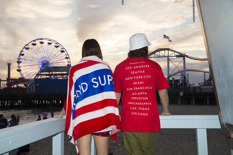 In commemoration of the US Independence Day which is just one day away, Diamond Supply Co. has unveiled the “4th of July” lookbook. Sporting the US flag theme, the range features the classic apparel, as well as a number of accessories such as tote bags, flip flops, socks, hats and towels. The items can be purchased at select Diamond Supply Co. stockists as well as its online store.