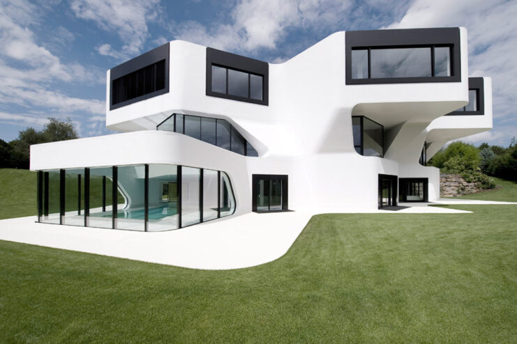 German architects J. Mayer H. have created a geometrical villa dubbed “Dupli Casa,” which is situated near Ludwigsburg in Germany. The villa was originally built in 1984 and has been transformed into a futuristic space with many extensions and modifications. A sophisticated connection between the interior and exterior creates a flow from the living area spilling out into the garden, also offering a second outdoor swimming pool. The shaping of the windows, indoor pool and the curving of the walls also exhibits modernism. The brilliant design is complemented by the spectacular views that look over the old town of Marbach and the Neckar Valley.