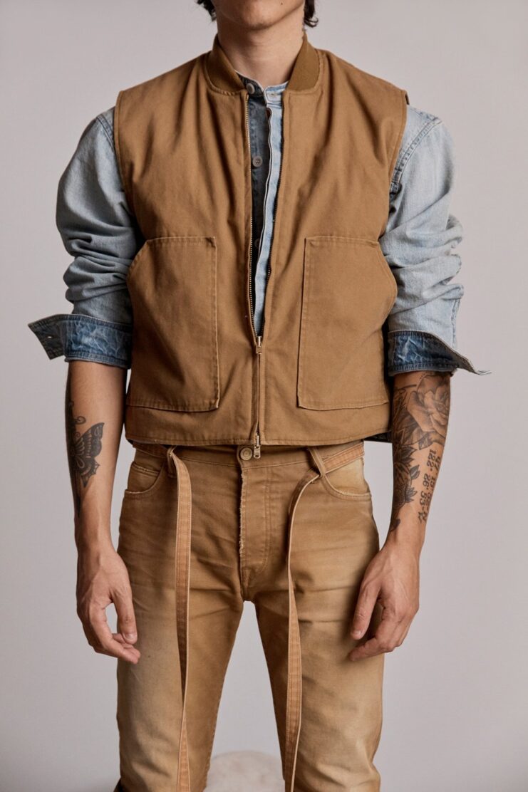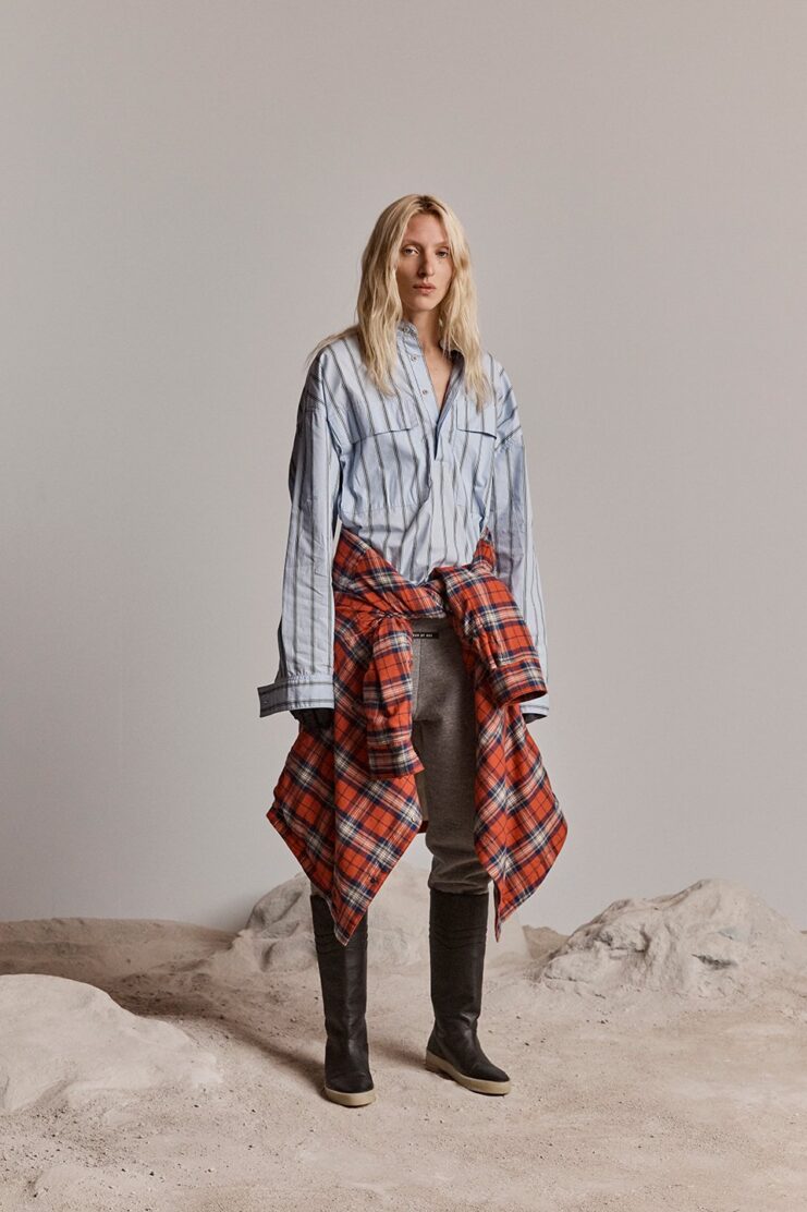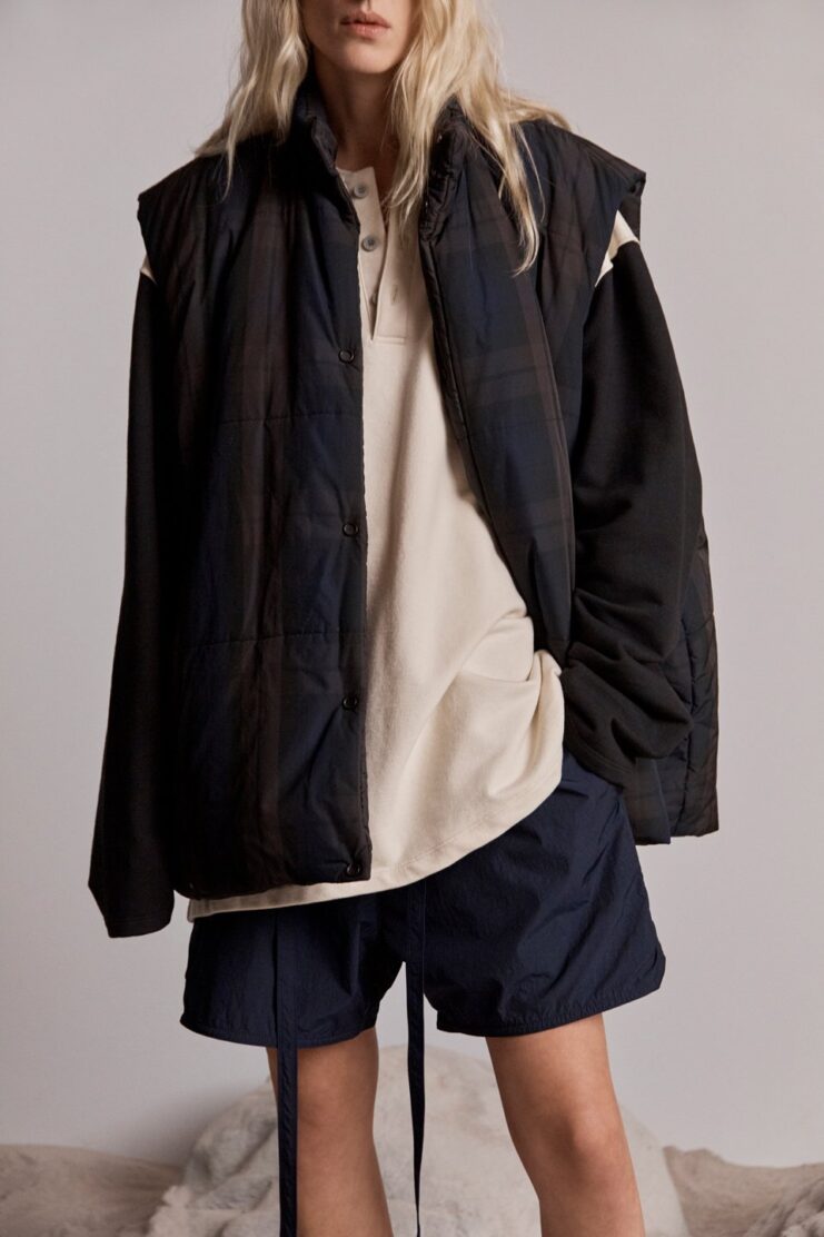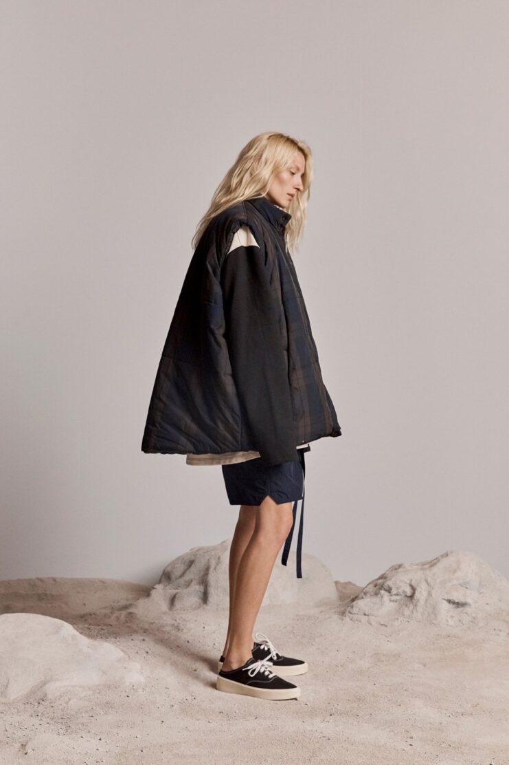 The newly unveiled comprehensive range houses a wide array signature oversized styling, in the form of weighty jackets, overshirts, bomber jackets, denim jackets, hooded vests, and coats. Ripped jeans, tapered trousers, jogging pants, and loose tearaway pants complement the heavy outerwear pieces, along with flannel shirts, t-shirts and thick hoodies. Fear of God’s signature crepe sole footwear also makes a return in different silhouettes and styles.