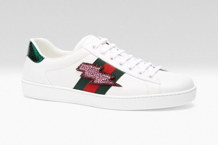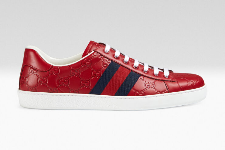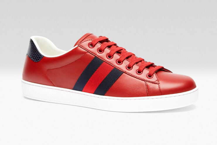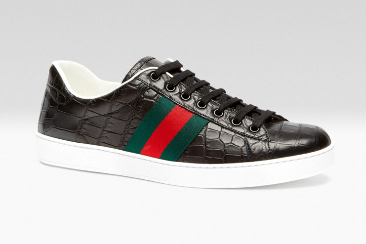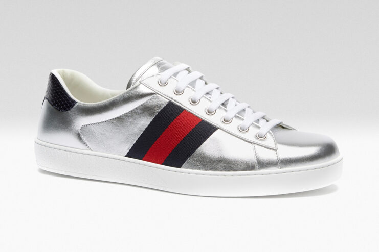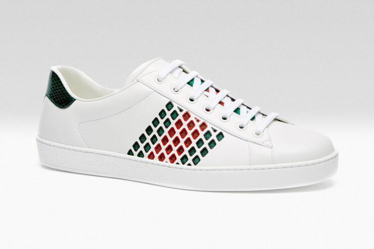 Gucci is gearing up to roll out a plethora of design options of its Ace sneaker silhouette for Pre-Fall 2016. The luxury low-top shoe will arrive in a number of leather options, some of which boasts snakeskin as well as crocodile trim. The brand’s signature black, red, and white color variations can be seen across the range, alongside metallic models and multi-colored iterations.