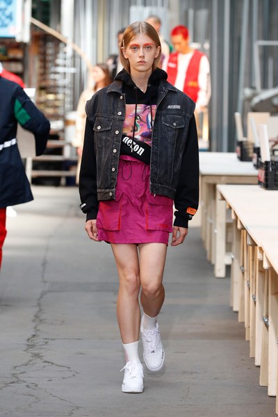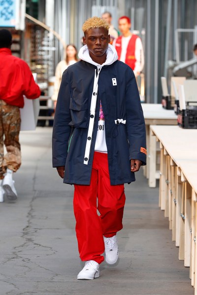 Dubbed “En Vogue”, Heron Preston took to Paris Fashion Week to showcase his Spring/Summer 2019 collection. The offering highlighted his continued penchant for utilitywear. Italicized Cantonese characters replaced Preston’s signature Cyrillic “Style” logo – a nod to his upcoming Hong Kong retail location which is scheduled to open in October 2018. The collection also marked a debut collaboration with Nike Vision, featuring a series of speed racer shades with four interchangeable accessory lenses.