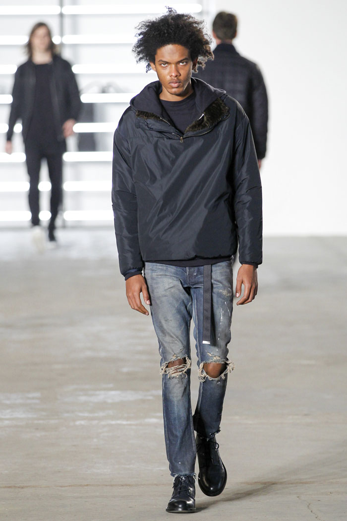 Los Angeles-based designer John Elliott takes it to the dark side for fall/winter 2016, entirely different from last season’s athletic theme, which was based on a long-distance run he took through Southeast Asia. The collection houses richly constructed jackets, bombers, hoodies, thermals, and raglan pullovers, which played around with heavy layering concepts. Completing the new look is the designer’s first foray into footwear, with nubuck high-tops with a small strip of leather resembling laces tied at the back of the ankle. Check out the collection in its entirety in the above gallery.