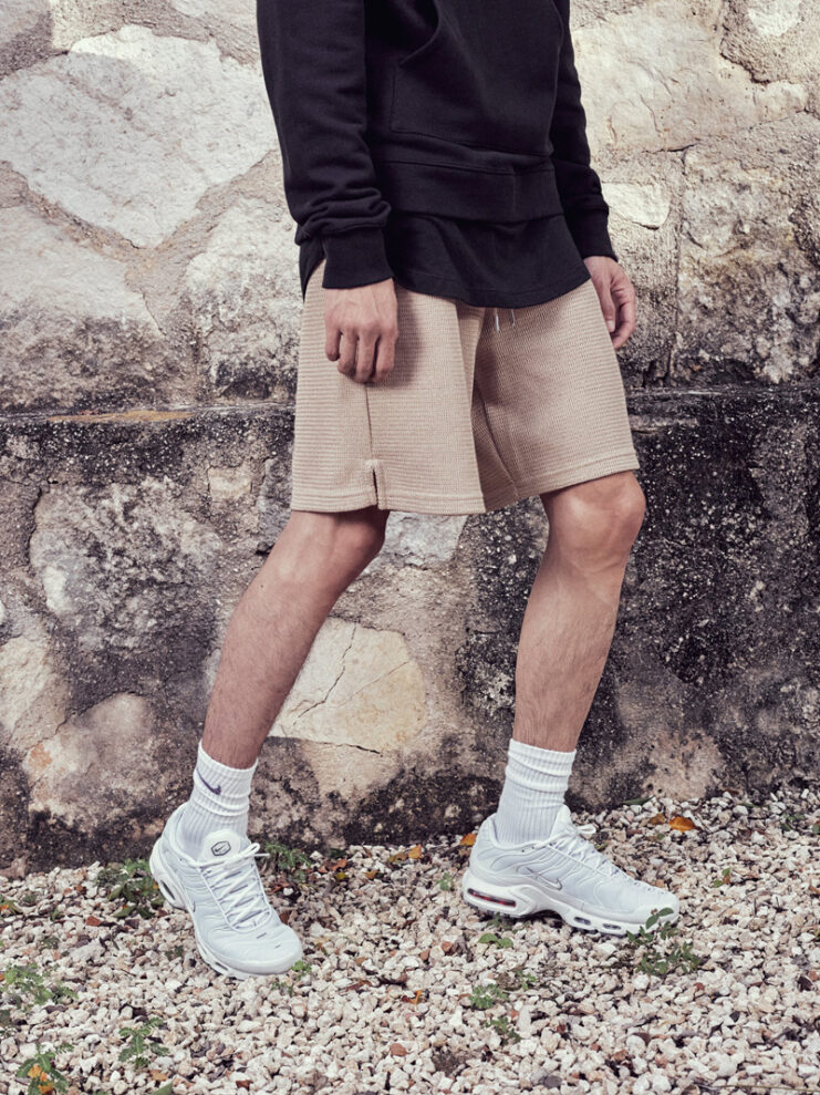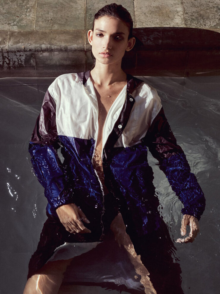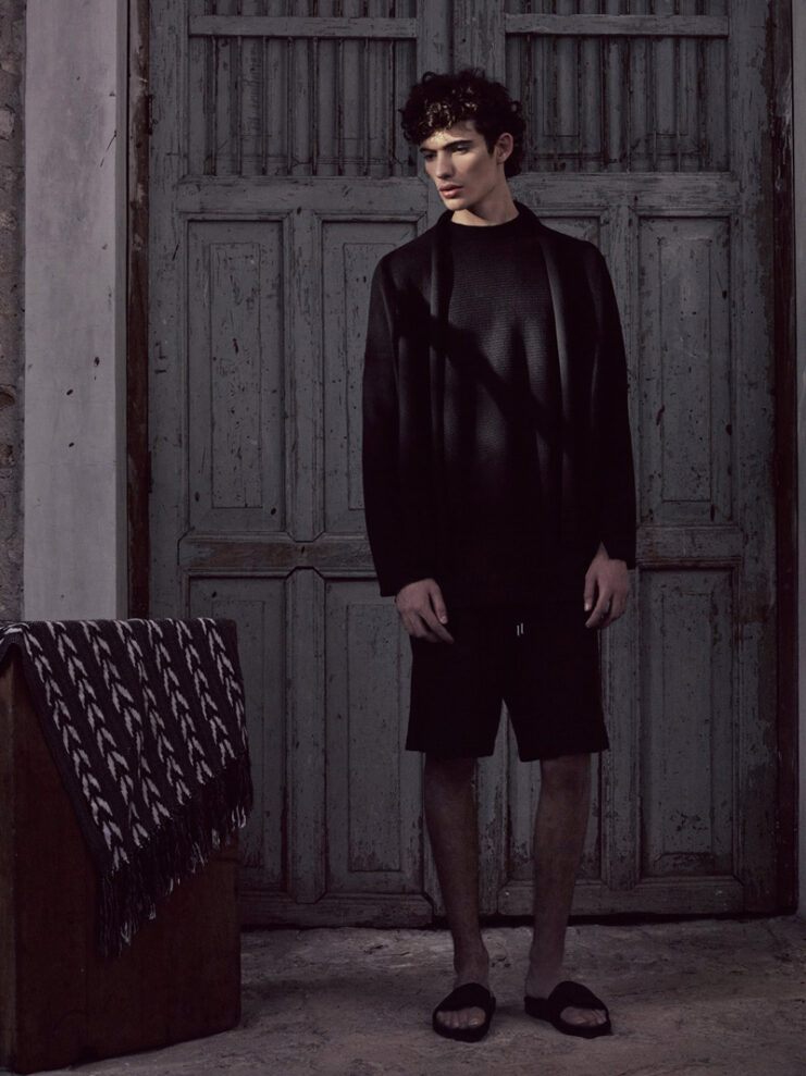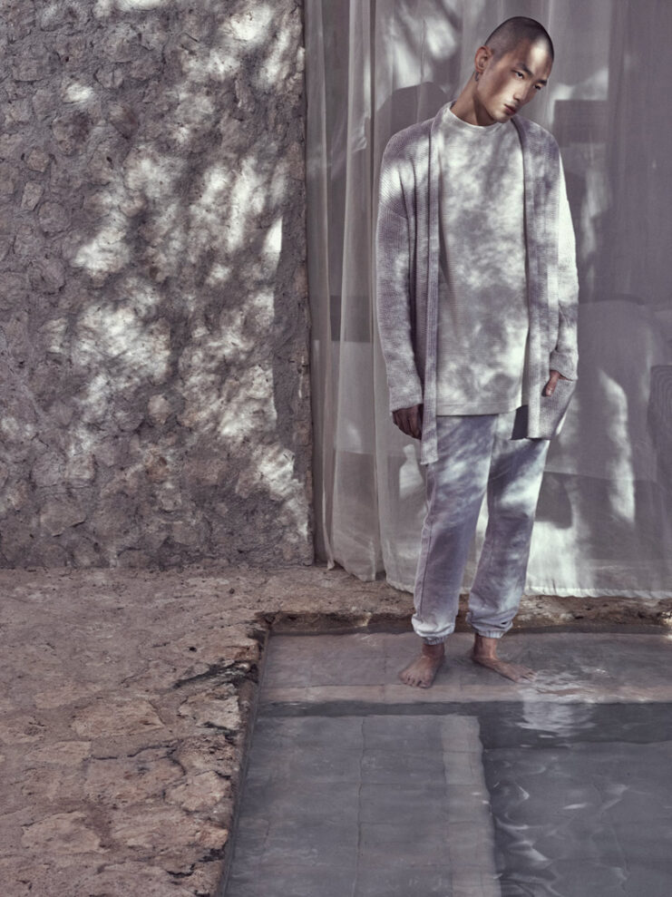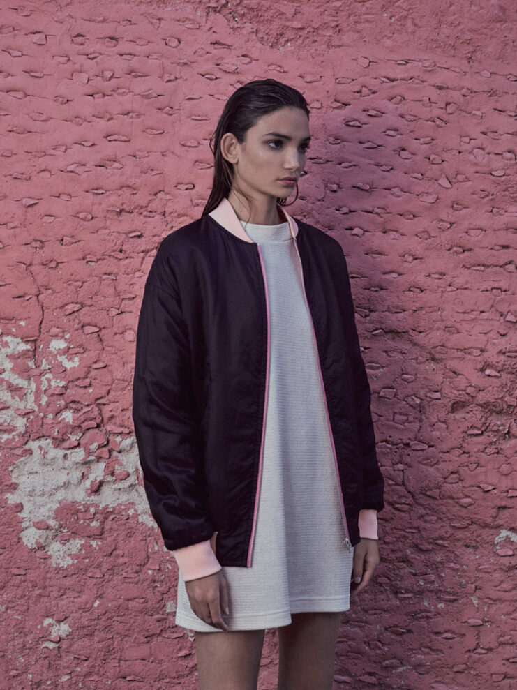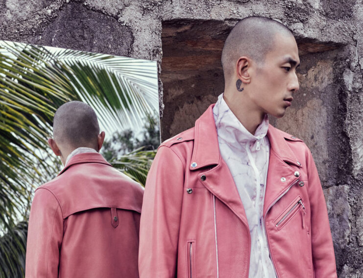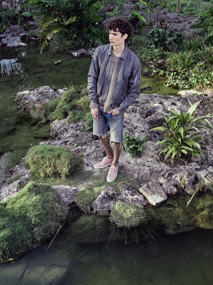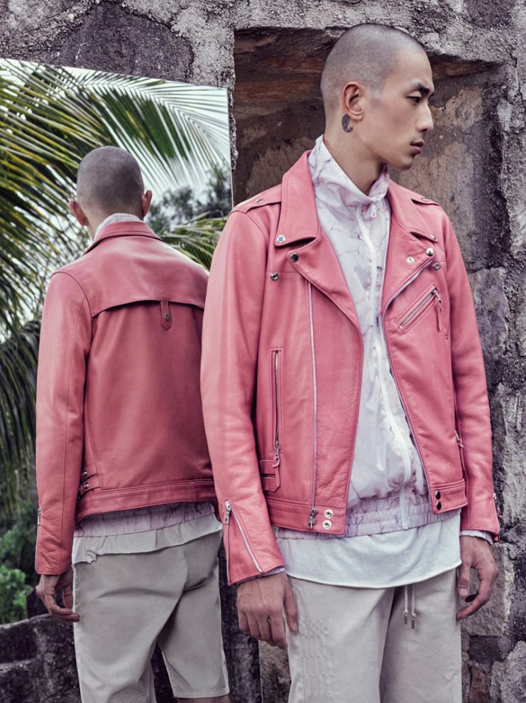 The new collection titled “Watching Water,” introduces a refreshing color palette which consists of pink, blue, cream, grey and black, which perfectly complements the season’s mood. Garments like moto jackets, bombers, relaxed knits, shorts, jeans and sweats can be found in the range.
