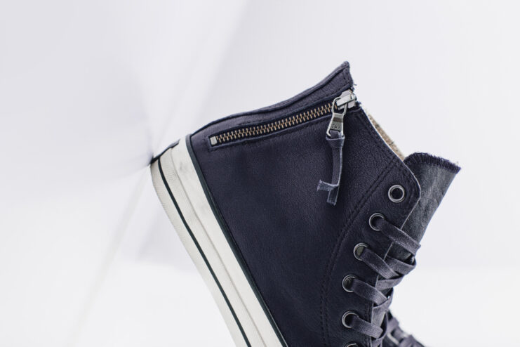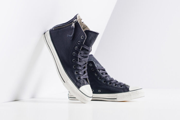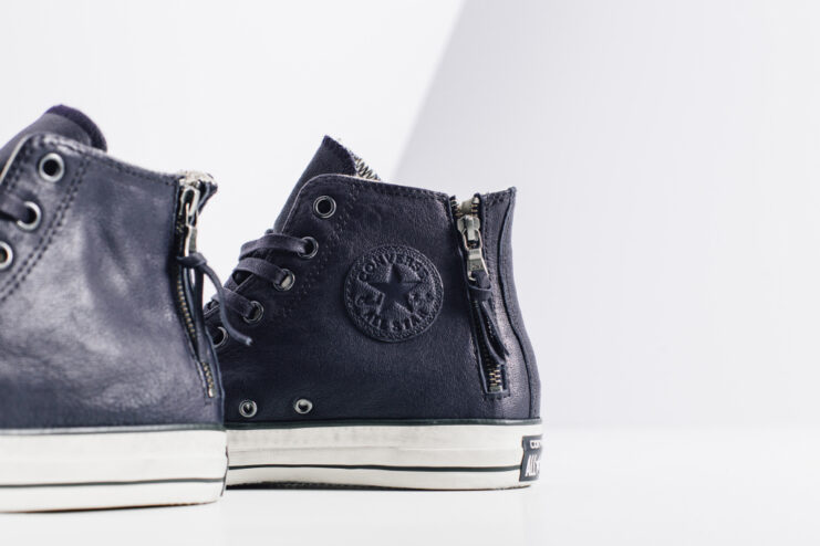 American contemporary menswear designer John Varatos and Converse continue their partnership with a new rendition of the Chuck Taylor Double Heel Zip Hi. Decked out in a premium leather upper with notable zippers on both sides of the heel panel, the sneaker sits atop a weathered outsole to give the signature Varvatos aesthetic. Metal eyelets and waxed laces completes the design. Proceed to Feature Sneaker Boutique to purchase the John Varvatos x Converse Leather Double Heel Zip Hi Dark Navy sneaker for $165 USD.