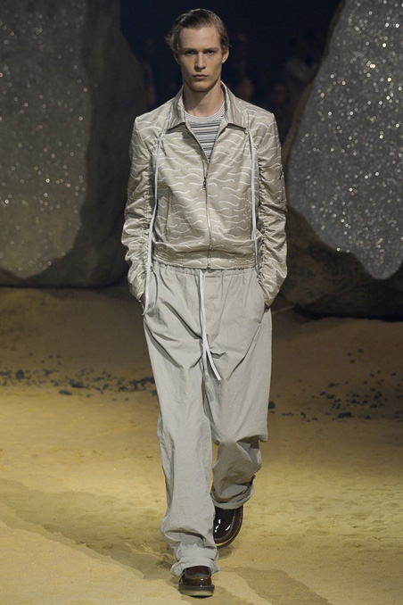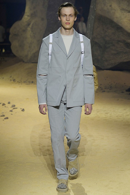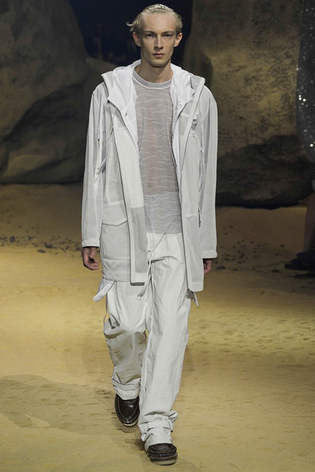 French luxury fashion house Kenzo took a rather different route for its spring 2016 menswear offering, toning down its highly graphic aesthetic. Relaxed silhouettes such as neutrals and breathable fabrics like nylon and cotton have been utilized. Highlights of the forthcoming range include jumpsuits, spiked jumpers and trousers, as well as garments with elongated drawstrings. View the collection in its entirety in the above gallery.