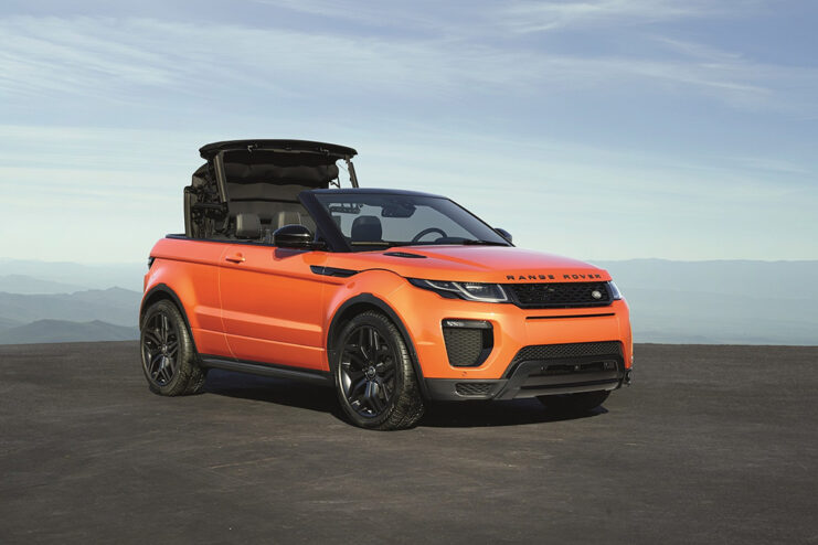 Land Rover has officially unveiled the convertible edition of the Range Rover Evoque SUV. The roof folds down neatly in the shape of a “Z” in 18 seconds and comes back up in 21 seconds, constructed to operate within speeds up to 30 miles per hour. Even though there is only 8.9 cubic feet of storage in the cargo area, there is a sizable seating for 4 and the hardtop Evoque coupe offers 19.4 cubic feet of storage. The new Range Rover Evoque Convertible SUV also boast the next generation of Jaguar-Land Rover’s In Control Touch Pro “infotainment system,” which comes with a 10.2-inch standard screen. Availability will begin mid-2016, as either a SE Dynamic or HSE Dynamic. For more information about the Range Rover Evoque Convertible and its features, check out the videos below and head over to Land Rover afterwards to learn more.