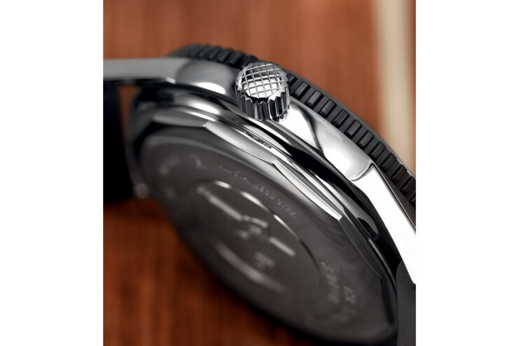 Similar trademark detailing from the original Skin Diver can be found on this new offering, such as a decorated caseback depicting a scuba diver with spear in hand, 3/6/9/12 Arabic numerals, an arrow-like hour hand matched with a tapered minute hand, and a matte black dial with golden-brown indices.