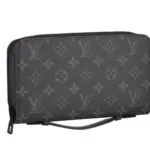 Taking inspiration from the classic Malle Courrier trunk, French fashion house Louis Vuitton presents the “Monogram Eclipse” collection for Fall/Winter 2016. The luxe treatment has been applied to a number of leather goods and travel items, which boasts smooth leather detailing and dark grey metallic accents. The capsule highlights the introduction of four new baggage options: the Backpack Voyager, the Messenger Voyager, the Keepall Voyager and the Travel Bag Explorer. Additional bags and other accessories such as pouches, wallets, belt, keychain, glove and sunglass are also present. The collection also houses some military-inspired ankle boots and monogram canvas sneakers.