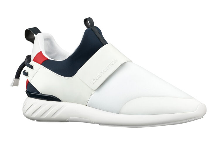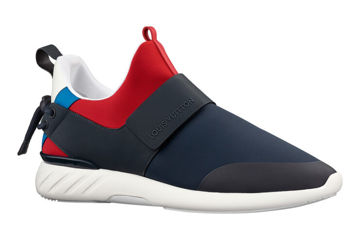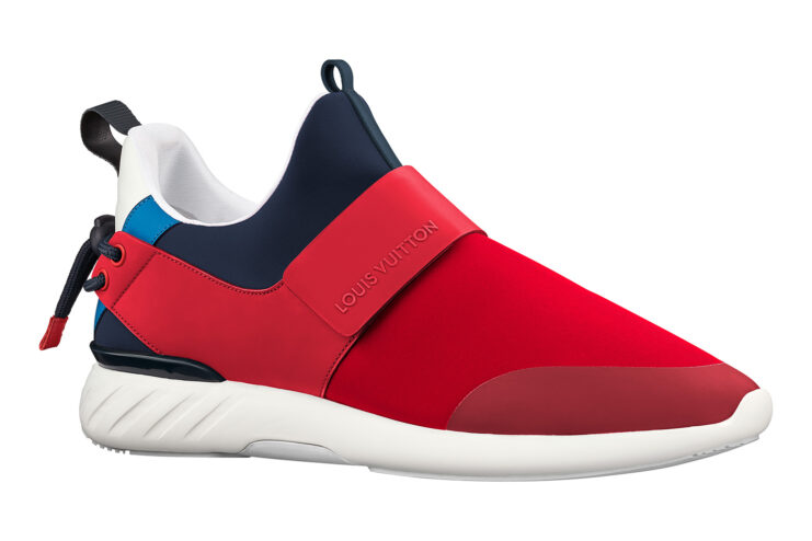 The sporty LV Regatta Sneaker are available in three polychromatic colorways: Bleu Pacifique, Rouge, and White and are available upon inquiry. Proceed to the Louis Vuitton website for further information.