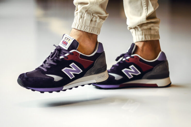 For Summer 2016, New Balance’s classic 577 silhouette has been brought back in a striking purple makeover, as part of the “English Tender” Pack. Aptly dubbed M577ETP, the made-in-England sneaker is decked out in purple, lilac, red and gray shades, with an upper crafted from premium suede and mesh. The shoe is rounded out with the typical NB logos on the lateral sides and embroidered tongue patch.