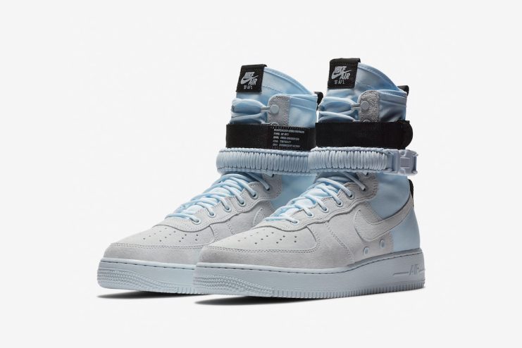Nike is blessing the AF1 community with yet another colorway of the SF-AF1 High. Aptly dubbed “Blue Tint,” the new colorway features a light grey suede along the toe box and midfoot, with a blue tint ballistic mesh noted on the heel. A contrasting black detailing has also been used on the adjustable strap, tongue tag and branded heel tab. Matching laces and soles round out the look of the shoe.