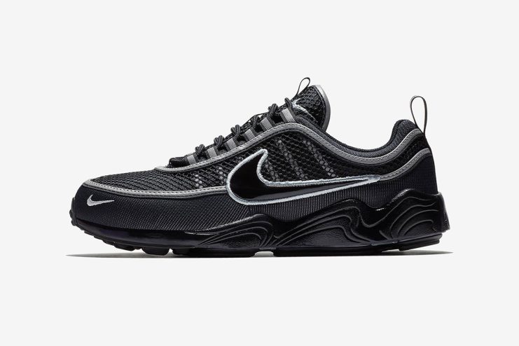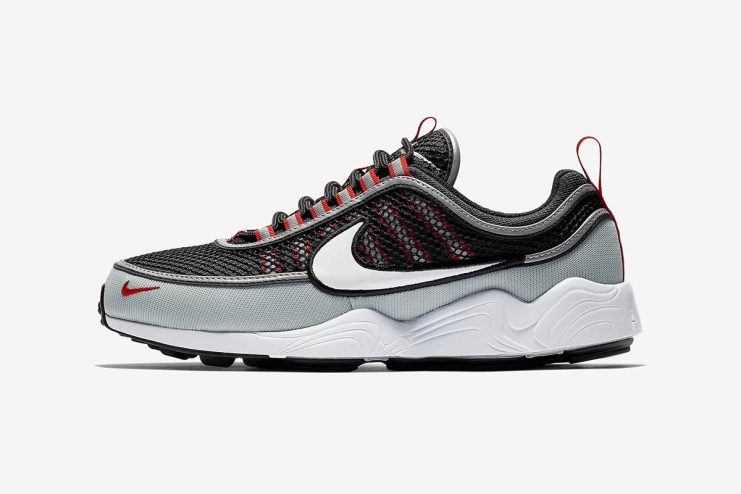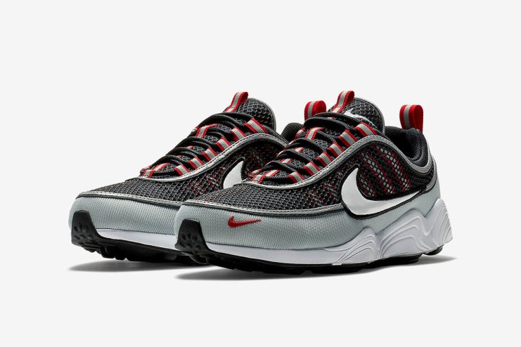 The Nike Air Zoom Spiridon is making a return in two new colorways, for the month of June. The first of the two new iteration boasts a tonal black upper with mesh layer, and lines of reflective silver accents on the midfoot, tongue, and heel collar, and a black patent leather swoosh. The second colorway features the same black mesh and silver accents on the upper, but with a louder contrasting color, with the mudguard delivered in light grey, and the lace loops and heel’s pull tab with some hits of red. The Swoosh sports a white patent leather, and a white midsole and black outsole round out the look.