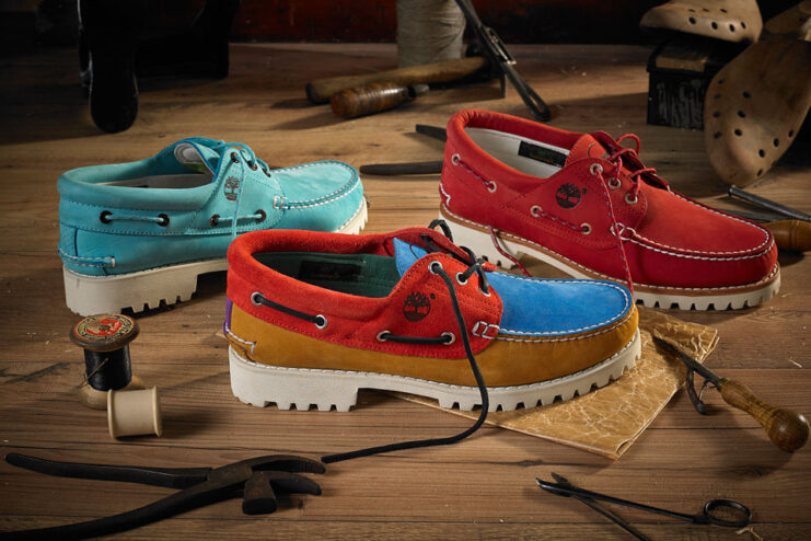 UK’s Offspring has teamed up with Timberland for a special release for the spring/summer 2015 season, dubbed the “Crafted” pack. The collection is a re-mastering of the classic boat shoe in three new leather and print combinations. Known as the 30003, the hand-crafted and rugged premium boat shoe which was initially introduced in 1979, has earned an iconic status in the Timberland collection since its launch. The new collection which will arrive in limited quantities, combines the classic Timberland silhouette and craftsmanship with a fresh design. The three pairs are offered in high-summer colorways, with the first and second pairs boasting a turquoise and red upper respectively, with metal eyelets and matching laces. The third pair combines a trio of nubuck leather in classic Timberland yellow, ruby red and sky blue. Each sit on a rugged white rubber outsole. The Offspring x Timberland Spring/Summer 2015 “Crafted” Pack will be available at Offspring stores and online beginning from May 9.