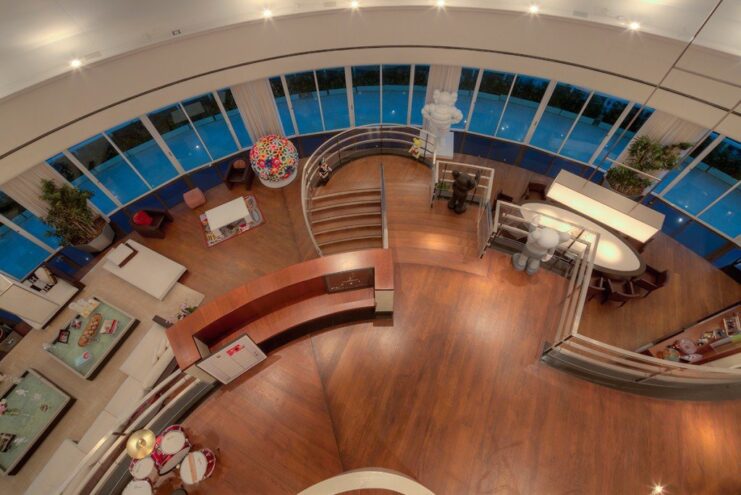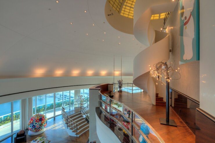 After a couple of years on the market and several price slash, Pharrell William’s Miami penthouse is back on the market. The 9,000 square-foot residence which is located at the top of the Bristol Tower in Miami’s Brickell neighborhood, includes an open cathedral-like living room, a second-floor loft space, spiral staircase, library, private screening room, 5,000 square-feet of outdoor terraces and five bedrooms in total. The property was initially put on the market for $16.8 Million USD in 2012, and was later slashed to $14 Million USD in 2013 and again to $10.8 Million USD. The official listing can be seen here.