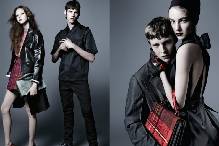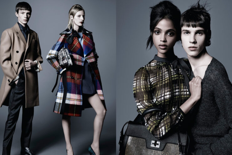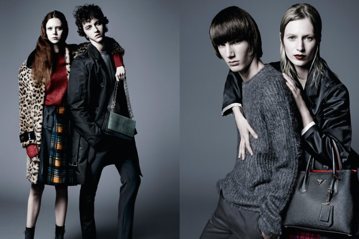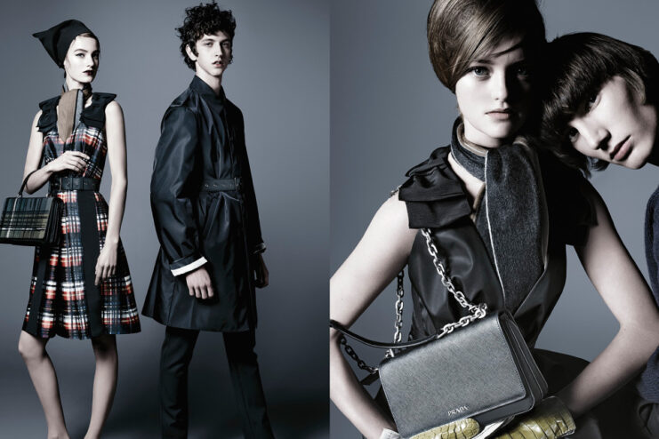 Luxury fashion house Prada has unveiled its pre-fall 2015 men’s and womenswear campaign. Shot by Steven Meisel, the collection reinterprets classic pieces in sombre hues, with a heavy use of nylon interspersed with wools and checks, maintaining Prada’s style of mixing aristocratic vibes with punk sensibilities.