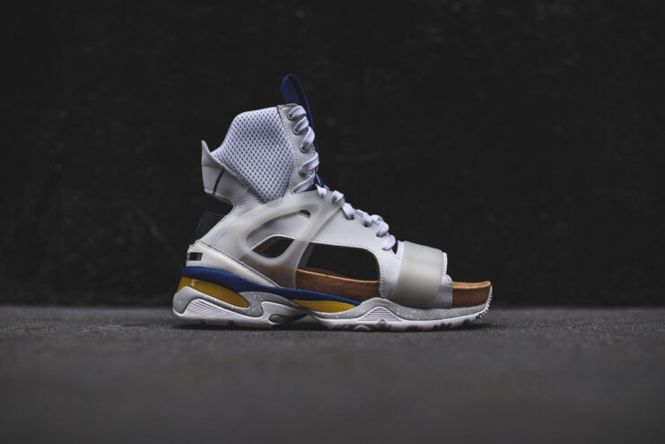 PUMA and McQ have joined forces to take the traditional sandal silhouette to a new level, as a part of their collaborative spring/summer 2016 collection. The high-top silhouette boasts an open forefoot, while its ankle collar sports mesh material for optimum breathability . Dual branding on the heel as well as on the tongue, rounds out the design, while making a unique statement.