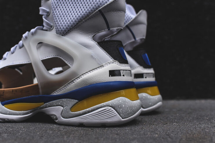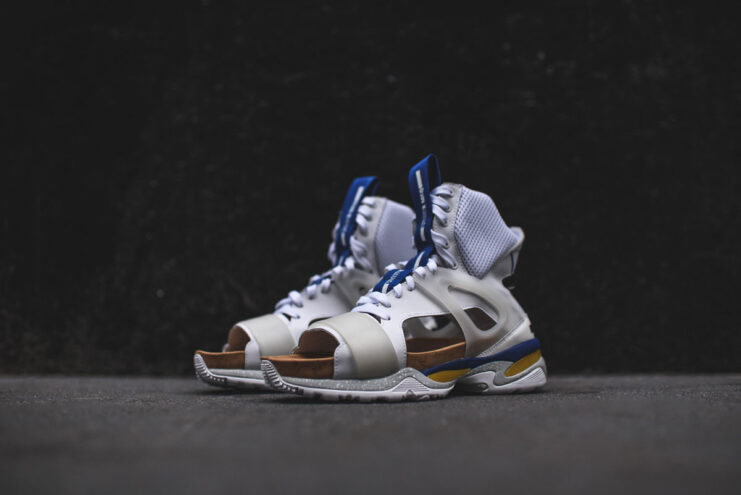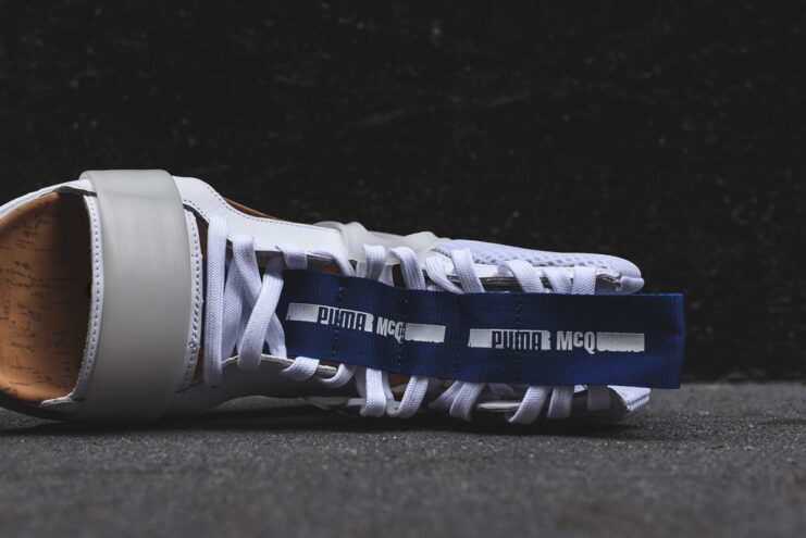 The PUMA x McQ Tech Runner Sandal is now available at select retailers including KITH, for $200 USD in options of White/Blue or Black/Red colorways.