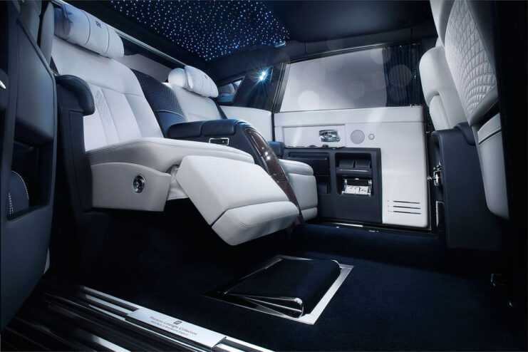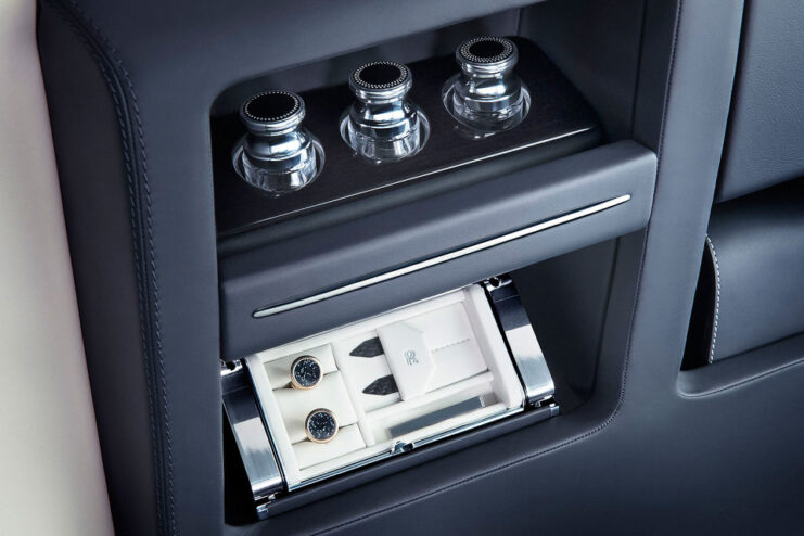 British luxury car maker Rolls-Royce present the new Phantom Limelight Collection, a bespoke limousine series for luxury travel. The car exterior boasts an exquisite Gala Blue paint job with a hand-painted Seashell and Navy Blue coach line with the diamond motif, and nine-spoke alloy wheels. Offered in two color schemes for the interior, the Light sports a Seashell with Navy Blue contrast leather, whereas the Dark sports a Navy Blue with Seashell contrast leather and navy tone-on-tone stitching. Rolls-Royce had also worked with medical professionals to design the model’s special rear seat, which has the optimal seating position with a 27-degree incline for ultimate comfort while in motion. The collection’s name is derived from the limelight effect, as the series “has been conceived for that select group of people who spend their lives in the public eye and on the world stage.” The Rolls-Royce Phantom Limelight Collection is now available for order at $650,000 USD, and it is limited to just 25 cars worldwide.