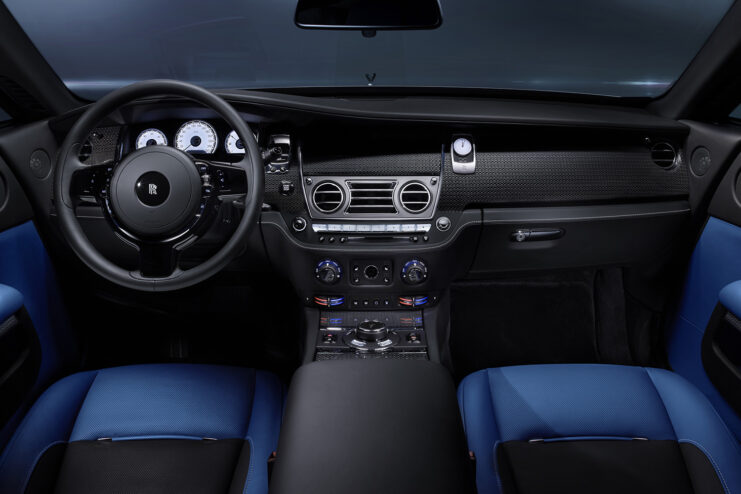 The Ghost sports purple accents, while the Wraith boasts blue detailing, with alloy-carbon composite wheels. The dashboards features an aluminum-threaded carbon composite that complements the brighter hits.