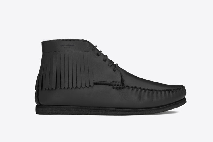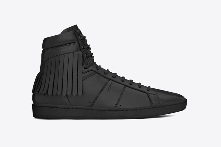 Parisian luxury fashion house Saint Laurent, has unveiled its Fall/Winter 2015 collection of sneakers. Headed by Hedi Slimane, who has apparently transformed the label into a luxury streetwear-infused label. The collection comprises of three blacked-out leather high-tops, crafted to the label’s high standards, including a fringed Court Classic SL18/H and moccasin boot, as well as a perforated and paneled high-top. Proceed to Saint Laurent’s website for purchase, as it’s now available.