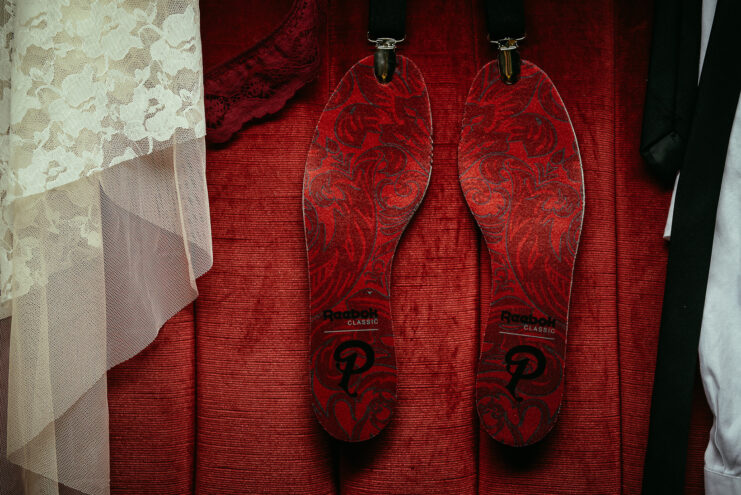 The shoe draws its inspiration from Storyville and its classic interior design elements. The upper features a rich dark red leather with a quilted overlay, resting atop a gum sole. The insoles feature a red on red paisley pattern to mimic the red velvet walls that usually ran floor-to-ceiling throughout the houses of the neighborhood. Finally, tonal laces and black gloss eyelets which pays tribute to the tools of the trade, rounds out the special design.