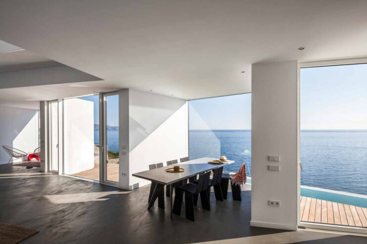 Cadaval & Solà-Morales, an architecture studio based in both Spain and Mexico, presents the Sunflower House. Located on a cliff-side overlooking the Mediterranean Sea, the stunning two-storey residence boasts a contemporary exterior design, highlighting white cubes of space all-through the futuristic home. At the interior, dark furniture complement the expansive white walls and panoramic glass view of the Mediterranean. This beautiful abode by Cadaval & Solà-Morales, which blends a futuristic design approach with simplicity, embodies luxury coastal living. Enjoy the visuals above and head over to Cadaval & Solà-Morales Architects’ online site for more.