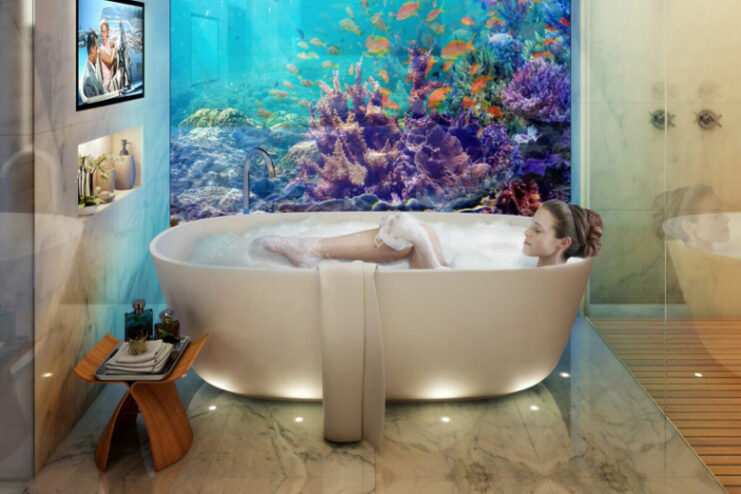 Launched at the Dubai International boat show, the Floating Seahorse by Kleindienst Group is a contemporary marine yacht that boasts underwater rooms with breathtaking views. Cleverly pioneered, designed and developed here in Dubai, the unique concept will be limited to just 42 units. The master bedroom and bathroom will be totally submerged underwater and will command breathtaking views of the surrounding coral reef and marine life.