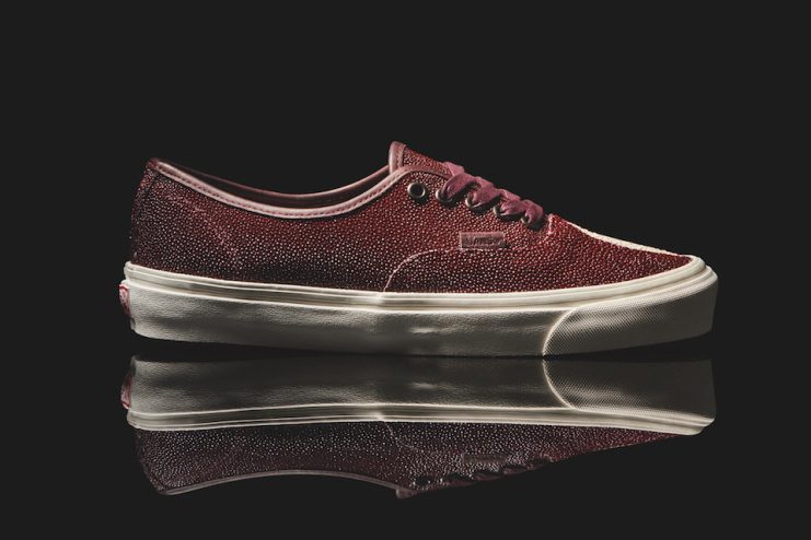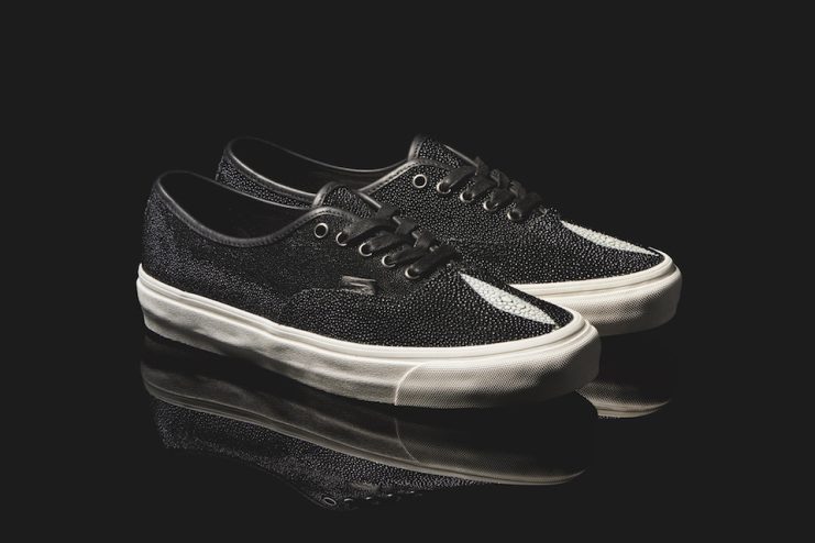 The stingray skins on the shoes were certifiably gleaned from a food manufacturer in Thailand. Check out Vault by Vans’ new delivery above, which is now available at select stockist such as colette.