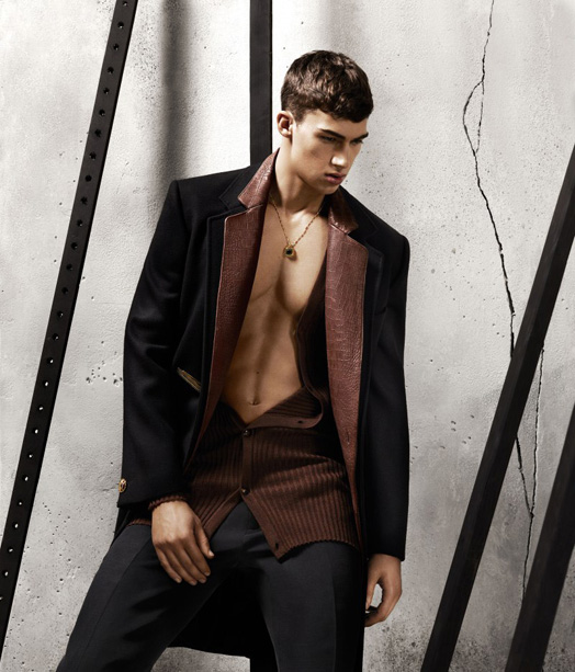 Versace has unveiled a new campaign for Fall/Winter 2015. Photographed by Mert & Marcus, and modeled by Oliver Stummvoll, River Viiperi and Alessio Pozzi, the Italian fashion house showcased a series of heavy outerwear pieces, layered with knitted garments, that are paired with various slim fit bottoms. Other notable pieces in the collection include the punk-inspired leather piece, hi-top sneakers, and accessories range. The Versace Fall/Winter 2015 collection will be available for purchase later this year.