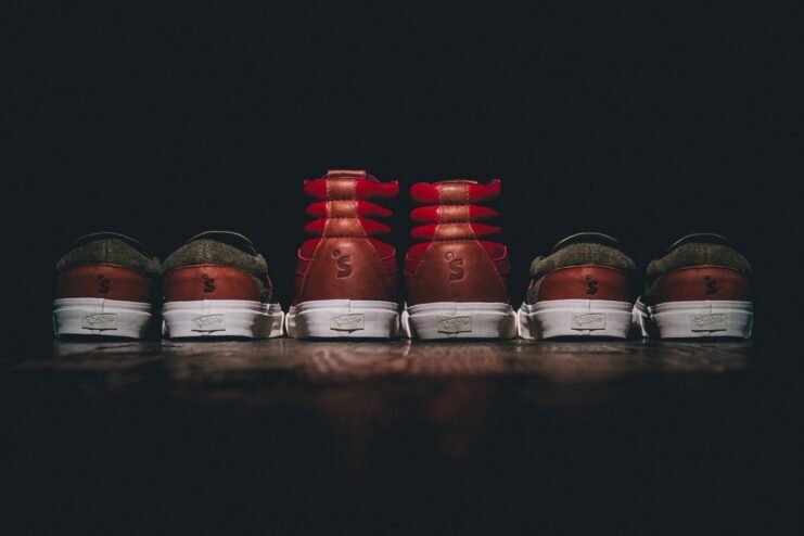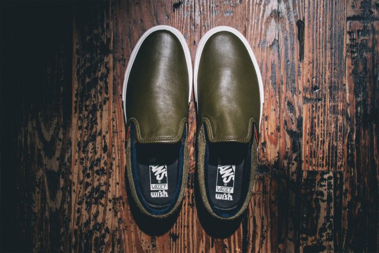 Luxury meets the streets of Atlanta with the latest Vault by Vans and Wish ATL collaborative endeavor. Dubbed the “Fine Wine & Olives” pack, the release includes a “Rio Red” rendition of the Sk8-Hi LX while the Classic Slip-On LX sports a dark olive color palette with terry cloth accents and corduroy lining. Both models boast a premium leather, with cross-stitch detailing and Wish ATL’s “S Man” logo embossed on the heel.