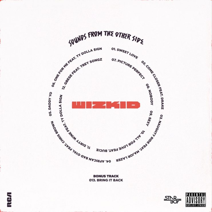 In preparation for the release of his highly anticipated summer project titled Sounds From The Other Side which is scheduled for July 14, pop superstar Wizkid has unveiled the tracklist to the 12-track mixtape. Alongside five previously released tracks which featured Drake, Chris Brown and Major Lazer, the mixtape includes seven additional songs and one bonus, with features from TY Dolla $ign – on two tracks, Trey Songz, and Bucie. Sounds From The Other Side is expected to be the biggest mixtape to ever emerge from the African continent. Check out the full tracklist below.